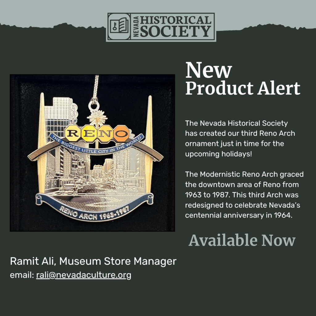 Don’t miss our Reno Arch ornament series, a wonderful Reno history-themed gift. The first and second Reno Arch ornaments light up.